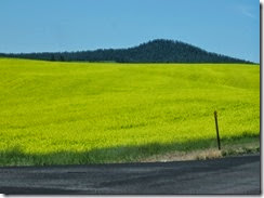 Continuing on toward Heyburn Star Park on Lake Coeur d’Alene, the road was lined with winter wheat and these brilliant yellow fields. My kid brother called them rapeseed, the stuff canola oil is made from. Saw miles of rapeseed and never tired of the brilliant yellow waving in the wind.